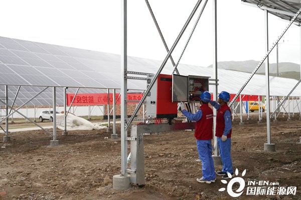 國家電網(wǎng)青海電力三江源(海北祁連)共產(chǎn)黨員服務(wù)隊正在幫助央隆鄉(xiāng)“牧光互補”羊棚改造升級項目開展前期的光伏接入檢查工作。