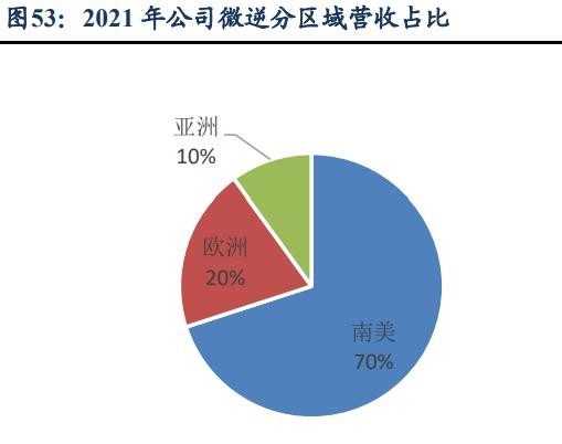 巴西為公司微逆主要市場。從公司的銷售商分布來看,德業(yè)主要市場為巴西、南非、 土耳其、波蘭等國,截止 2021 年 12 月公司在全球中銷售商數(shù)量為 83 家,其中巴西的 銷售商達 29 家。從營收分區(qū)域占比看,2021 年南美市場收入占比達 70%,其次是歐洲, 占比約 20%,亞洲約 10%,巴西是公司微逆業(yè)務(wù)的最大市場。