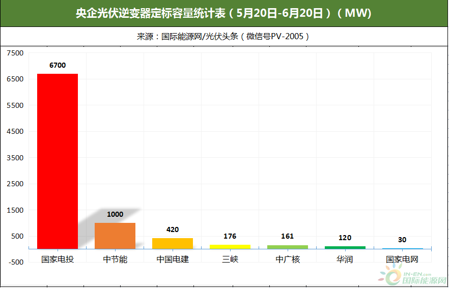 5月下旬以來,陽光電源中標中國電建、國家電投、陜西煤業、深燃清潔能源等企業6個項目(標段),確定中標容量485.94MW。