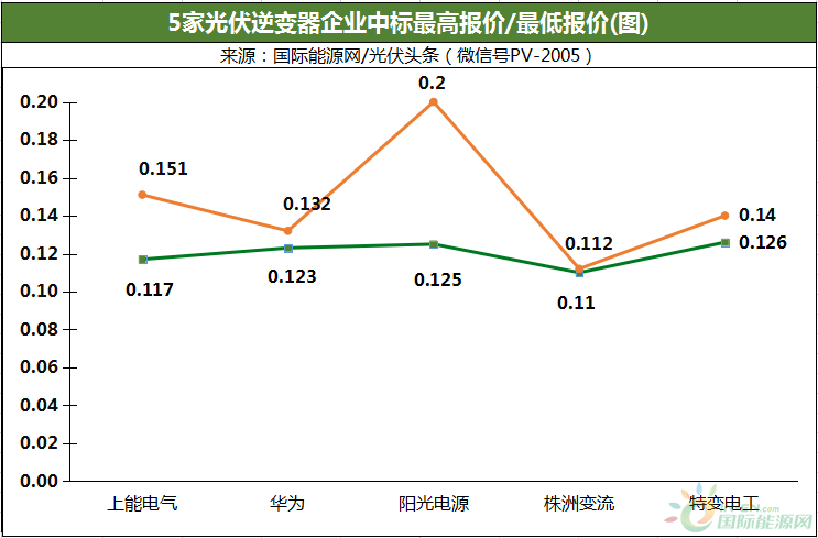 其中,陽光電源作為深圳市深燃清潔能源有限公司光伏逆變器集中采購項目的中標人,該項目采購容量25MW,陽光電源中標報價0.2元/W,是其最高報價中標項目。