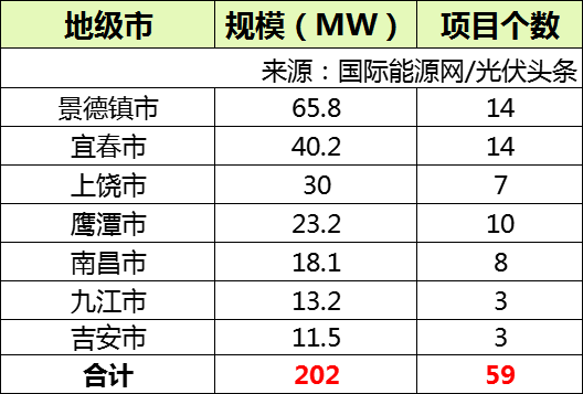 根據公布的項目名單,此次共公布59個項目,總規模約為202MW。不同地級市的規模如下表所示。