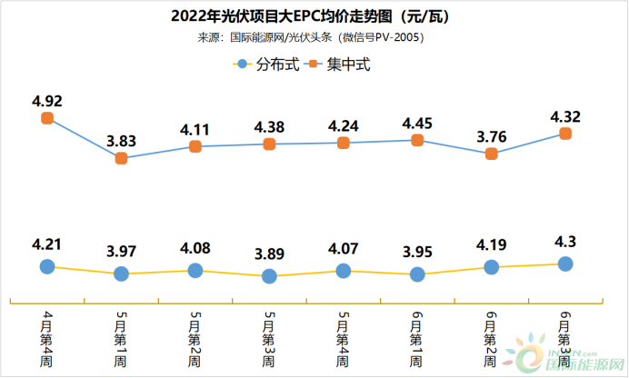 分布式大EPC均價4.3元/W!集中式大EPC均價4.32元/W!本周6.57GW光伏招中標項目【項目·周分析】