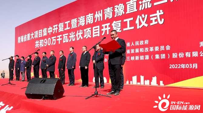 近日,在青海省2022年度重大項(xiàng)目集中開復(fù)工儀式上,三峽集團(tuán)所屬三峽能源海南州青豫直流二期外送通道共和90萬千瓦光伏項(xiàng)目正式開復(fù)工。青海省政府副省長劉濤出席開復(fù)工儀式并宣布項(xiàng)目開復(fù)工,海南州州委書記呂剛致辭,州委副書記、州長尕瑪朋措主持開復(fù)工儀式。