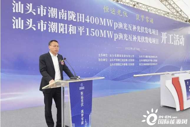 在“碳達(dá)峰、碳中和”的行業(yè)背景下,新能源產(chǎn)業(yè)迎來(lái)了重大的發(fā)展機(jī)遇。現(xiàn)代能源集團(tuán)肖立總經(jīng)理在致辭中表示,汕頭地區(qū)發(fā)展光伏產(chǎn)業(yè)具有得天獨(dú)厚的天然優(yōu)勢(shì),隴田、和平漁光互補(bǔ)光伏發(fā)電項(xiàng)目是集團(tuán)精心謀劃的好項(xiàng)目,將助力汕頭地區(qū)加快構(gòu)建清潔低碳、安全高效的現(xiàn)代能源體系,又將助力當(dāng)?shù)貪O業(yè)增效、漁民增收、農(nóng)村增綠,推動(dòng)美麗鄉(xiāng)村再升級(jí),為區(qū)域?qū)崿F(xiàn)“雙碳目標(biāo)”做出重要貢獻(xiàn)。同時(shí)真誠(chéng)希望汕頭市、區(qū)相關(guān)政府部門(mén)、鎮(zhèn)村,項(xiàng)目合作方和參建單位繼續(xù)對(duì)項(xiàng)目建設(shè)和運(yùn)營(yíng)給予大力支持和幫助,把本項(xiàng)目建設(shè)成為新能源精品樣板工程。