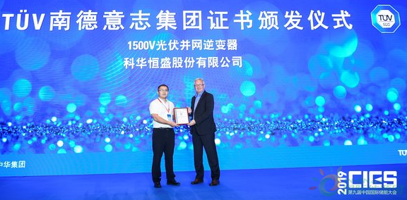 科華恒盛1500V光伏并網(wǎng)逆變器獲TüV南德認(rèn)證證書