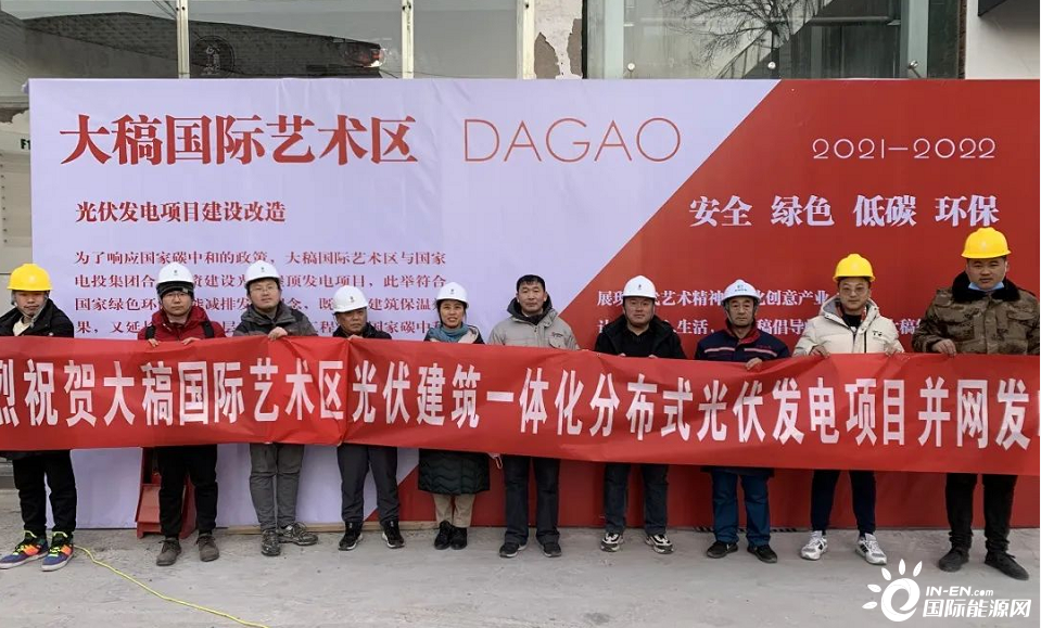 2021年12月30日,北京新能源公司在京區域大稿國際藝術區光伏建筑一體化分布式光伏發電項目并網發電。這是公司首個光伏建筑一體化(BIPV)項目,它的順利并網發電為北京新能源2021年工程建設劃上了圓滿的句號。