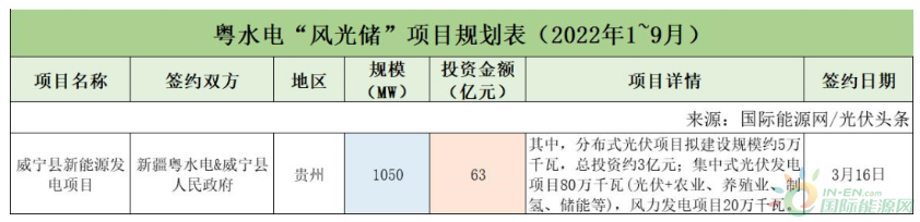 截至2022年9月30日,粵水電共簽約(規劃)1個風光儲項目,項目規模為1.05GW,投資金額63億元。