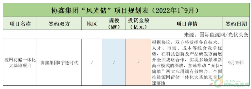 截至2022年9月30日,協鑫集團共簽約(規劃)1個風光儲項目,該項目僅簽署了合作協議。
